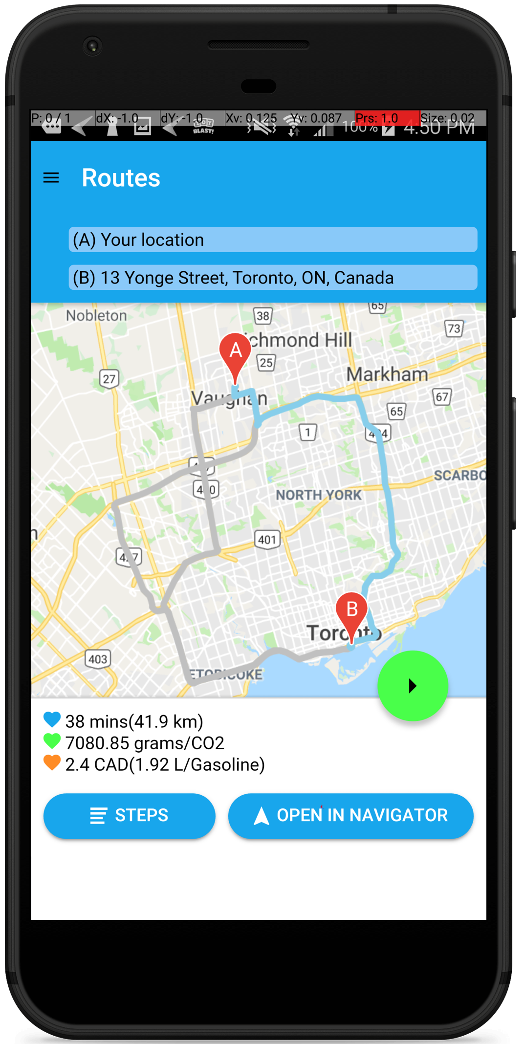 Evaluway's unique solution combines real-time traffic information and fuel economy data to add valuable metrics to your planned route: fuel consumption, cost and carbon emmission. It is predictive, and you benefit from selecting cheapest, fastest or greenest route before you start driving. Unlike the competitor, where only historical data is provided.